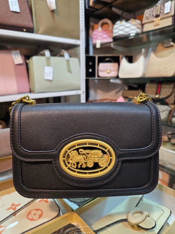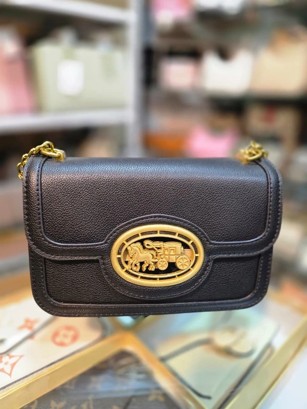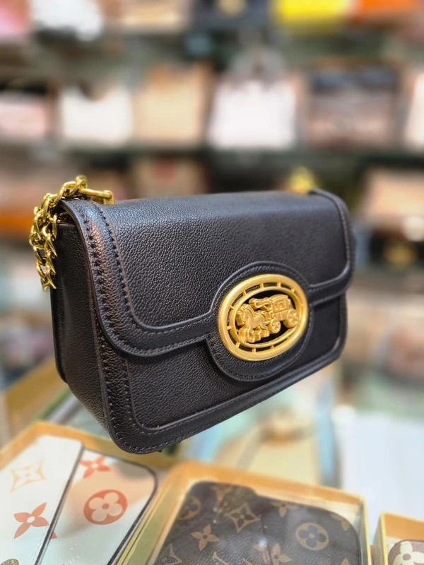 Elevate your everyday style with this elegant and compact Coach Premium Black Chain Sling Bag, designed for women who love classy, statement accessories. Featuring a sleek structured silhouette and a bold gold-tone emblem closure, this bag blends luxury aesthetics with modern practicality.