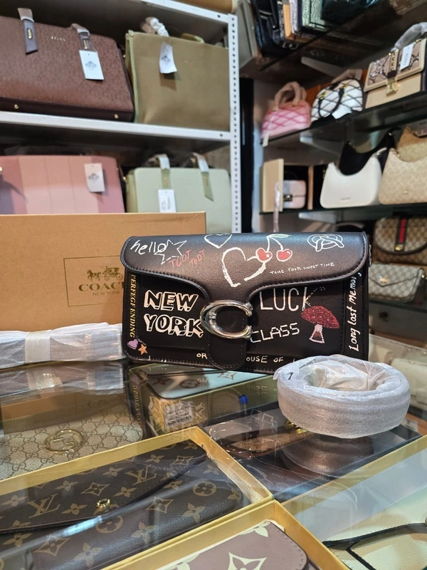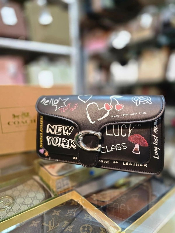 Upgrade your fashion game with this Coach Inspired Graffiti Print Flap Sling Bag, designed for women who love bold style with a touch of luxury. Featuring a trendy black base with stylish graffiti artwork and New York theme graphics, this bag gives a chic and modern designer look.