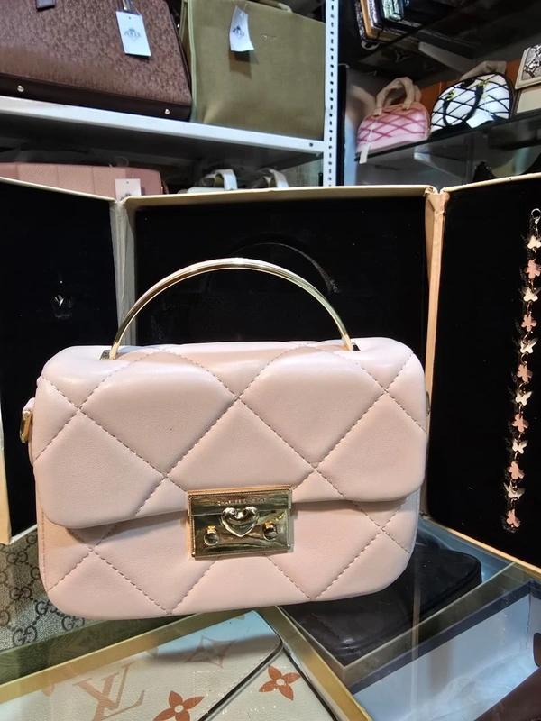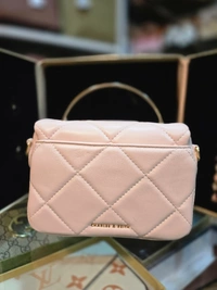 Bring elegance and sophistication to your accessory collection with this stunning quilted pink top-handle handbag from Charles & Keith. Designed for modern women who appreciate luxury with a feminine touch, this bag perfectly blends timeless style with contemporary charm. Its soft pastel pink shade, diamond quilted pattern, and polished gold-tone hardware create a refined look that stands out effortlessly.