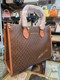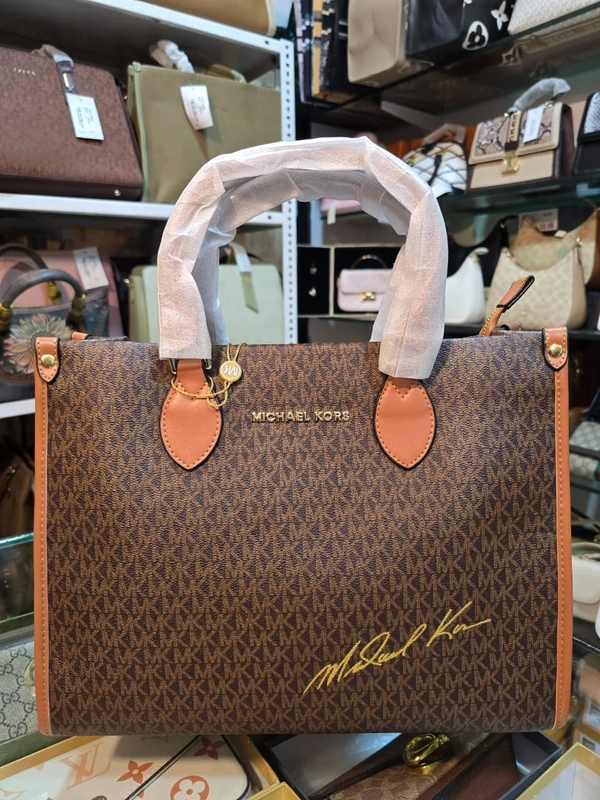 The elegant gold-tone “Michael Kors” logo on the front enhances its premium appeal, while the signature monogram pattern reflects timeless designer fashion. This bag effortlessly transitions from office meetings to weekend outings, making it a versatile must-have in every wardrobe.