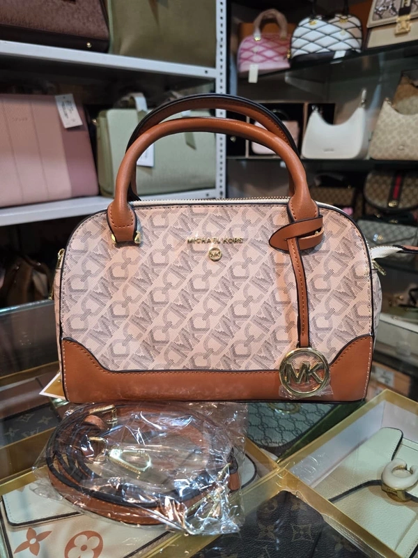 Add effortless sophistication to your collection with this stunning Michael Kors Signature Boston Handbag, designed for women who love refined luxury with everyday functionality. Featuring the iconic MK-inspired monogram pattern with rich tan leather accents, this handbag delivers a polished and elegant look perfect for both casual and formal occasions.